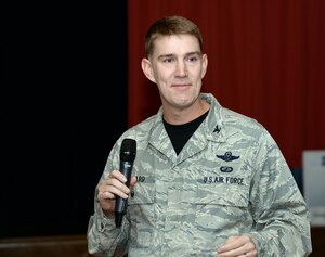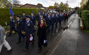 U.S. Air Force Col. Thomas D. Torkelson, right, 100th Air Refueling Wing commander, prepares to carve a turkey as his wife Debbie, left, stands by to help serve other food to customers Nov. 24, 2016, at the Gateway Dining Facility on RAF Mildenhall, England. Team Mildenhall leadership and spouses
