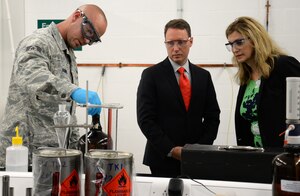 Team Mildenhall leadership welcomed distinguished guests July 28, 2016. Amanda Simpson, Deputy Assistant Secretary of Defense for Operational Energy, and Robert Warshel, Director of Operations, Operational Energy Plans and Programs, took part in a tour of the installation, hosted by the 100th