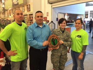 Linda Brady, 100th Force Support Squadron food service worker, prepares to serve food to customers at the Gateway Dining Facility June 29, 2016, on RAF Mildenhall, England. Brady was selected for the Square D Spotlight for exhibiting the Air Force Core Value, Service Before Self. (U.S. Air Force
