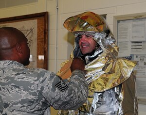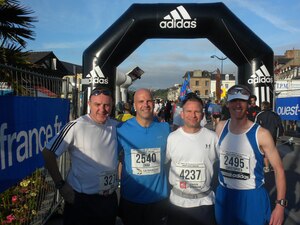 Like four musketeers, it was "all for one and one for all" when four leaders from RAF Mildenhall got together May 29, and ran for the hills - or to be more precise, a small rocky island in France.Col. Chad Manske, 100th Air Refueling Wing commander, Lt. Col Don Robertson, 100th Security Forces