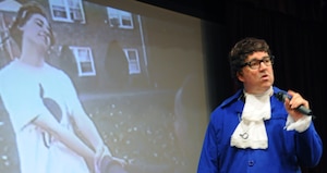 As people took their seats and a projector was fired up, one man walked around the base theater here April 26 ringing a chime every 12 seconds without saying a word."I've been ringing this chime every 12 seconds, because in that amount of time, a crime has been committed," said Ben Atherton-Zeman,