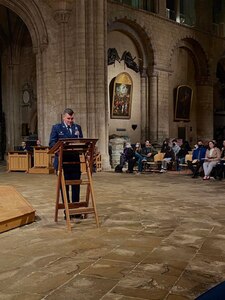 Members of the Ely Cathedral invited U.S. Air Force Airmen from Royal Air Force Mildenhall and RAF Lakenheath to attend a Thanksgiving Eve Ceremony, Nov. 28, 2021. Guest speaker Rt. Rev. Dr. Dagmar Winter, the Bishop of Huntingdon, delivered the Thanksgiving message at the service.