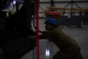 March 22, 2022 100th Maintenance Squadron Conducts Jet Engine Raise U.S. Air Force Airmen from the 100th Maintenance Squadron aerospace propulsion section perform an engine raise on a KC-135 Stratotanker aircraft at Royal Air Force Mildenhall, England, March 17, 2022.