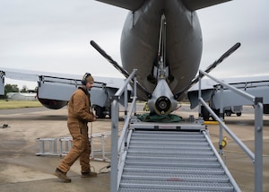Oct. 15, 2021 100th Aircraft Maintenance Squadron crew chief performs maintenance on a KC-135 boom. U.S. Air Force Staff Sgt. Tyler Collins, 100th Air Maintenance Squadron crew chief, performed maintenance on a KC-135 Stratotanker assigned to the 100th Air Refueling Wing at RAF Mildenhall, England, Oct. 7, 2021. The 100th AMXS ensures the KC-135 is able to provide rapid global mobility and aerial