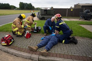 Oct. 19, 2021 100th MXS fuels systems shop fuel cell extraction exercise The 100th MXS fuels system shop teamed up with the 100th Civil Engineer Squadron firefighters to reenact a scenario where an Airman simulates losing consciousness due to lack of oxygen in a fuel cell on Royal Air Force Mildenhall, England, Oct. 14, 2021. The 100th MXS held this exercise to test the