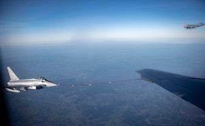 The 100th Air Refueling Wing supported German Eurofighter Typhoons over Germany, Dec. 4, 2019. The Bloody Hundredth is the only permanent U.S. air refueling wing in the European theater, providing the critical air refueling "bridge" which allows the Expeditionary Air Force to deploy around the globe