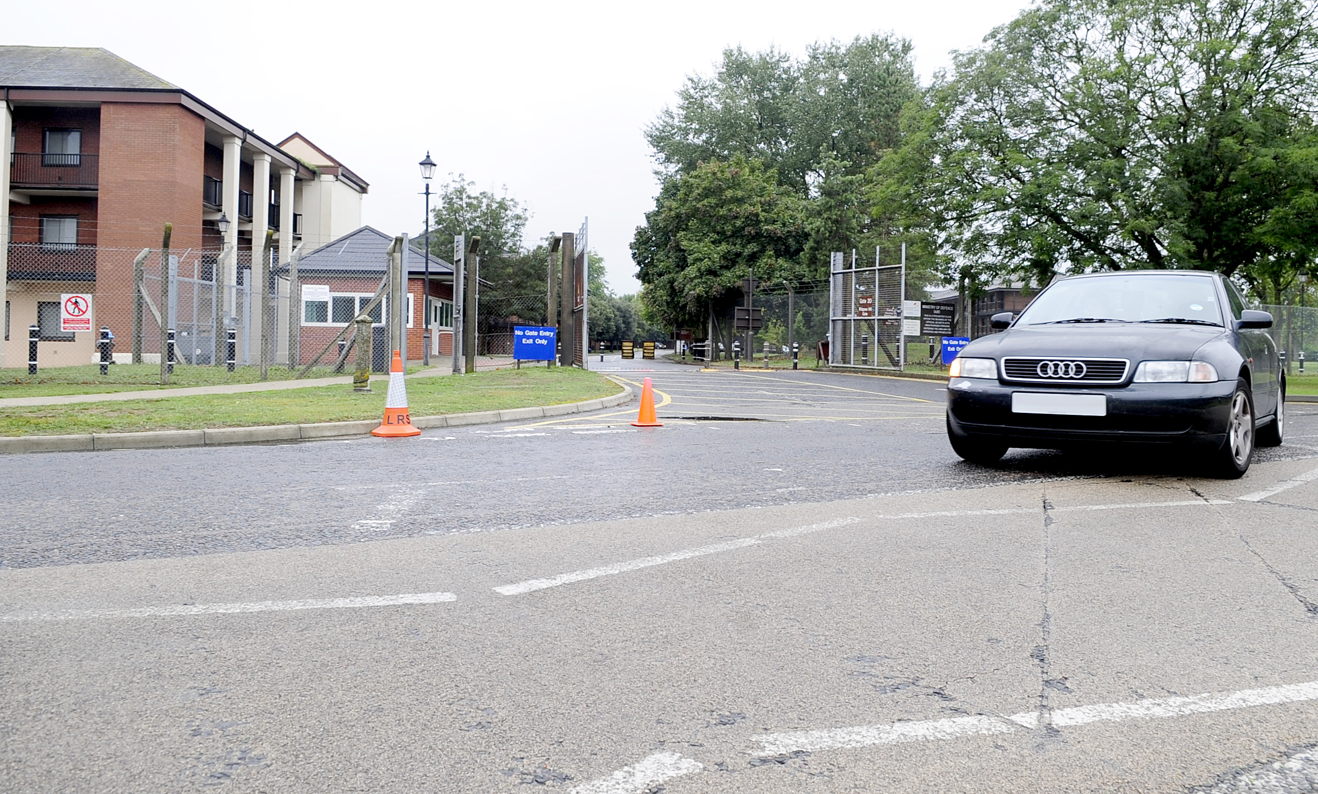 RAF MILDENHALL, England – Due to the construction along Lincoln Road and the Bird-in-Hand Gate closure, all traffic heading out of the Shippea Gate can now turn right as well as left, to reduce traffic build-up while exiting the Main Gate. The 100th Civil Engineer Squadron will place new road signs and markings to help eliminate confusion and keep drivers safe. (U.S. Air Force photo/Senior Airman Ethan Morgan) (Photo altered for security purposes)