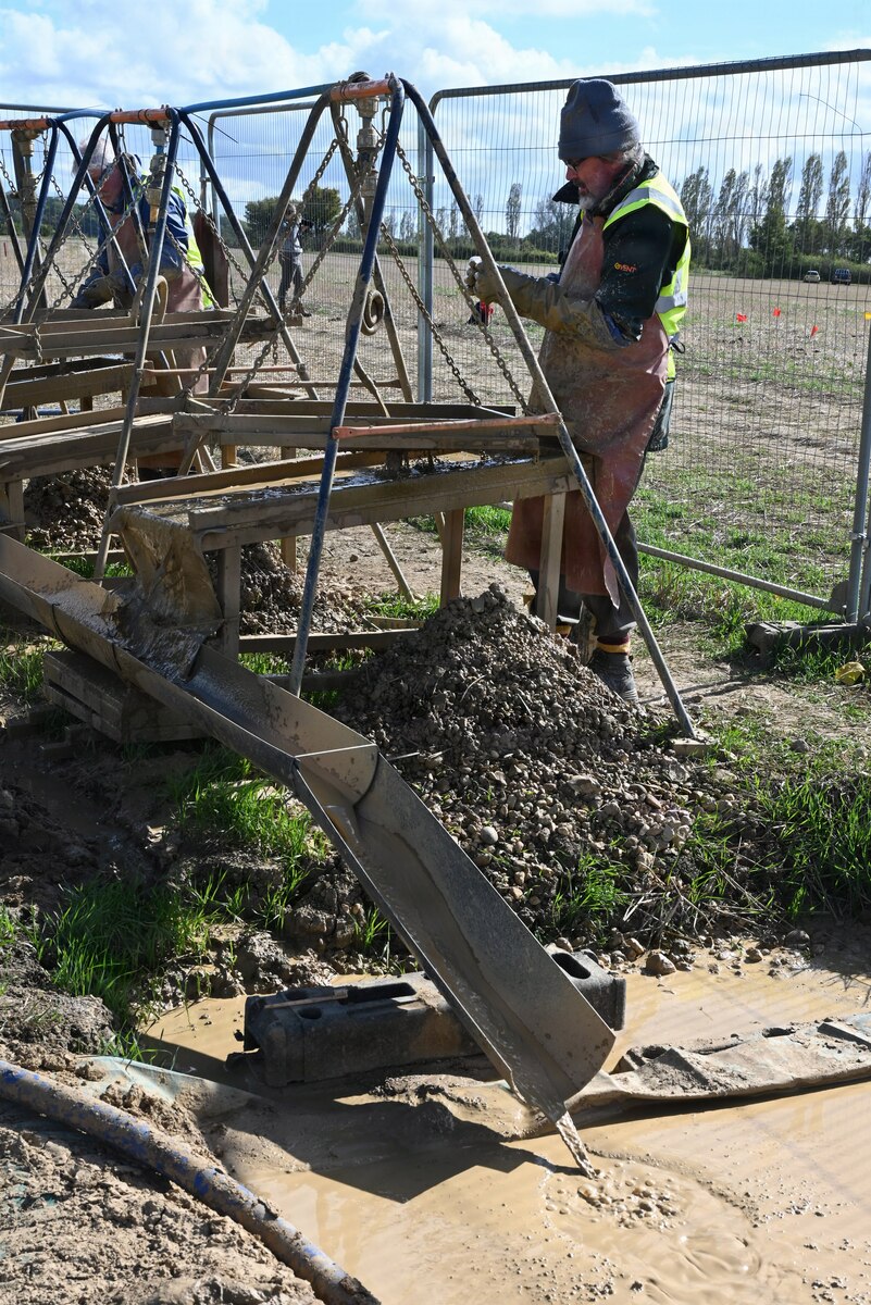 ROYAL AIR FORCE MILDENHALL, England. -- Team Mildenhall participated in a six-week excavation project to find a World War II, U.S. Army Air Forces pilot 2nd Lt. Lester Lowry and his P-47D Thunderbolt, in Essex, England, Sept. 15 to Sept. 26, 2025.