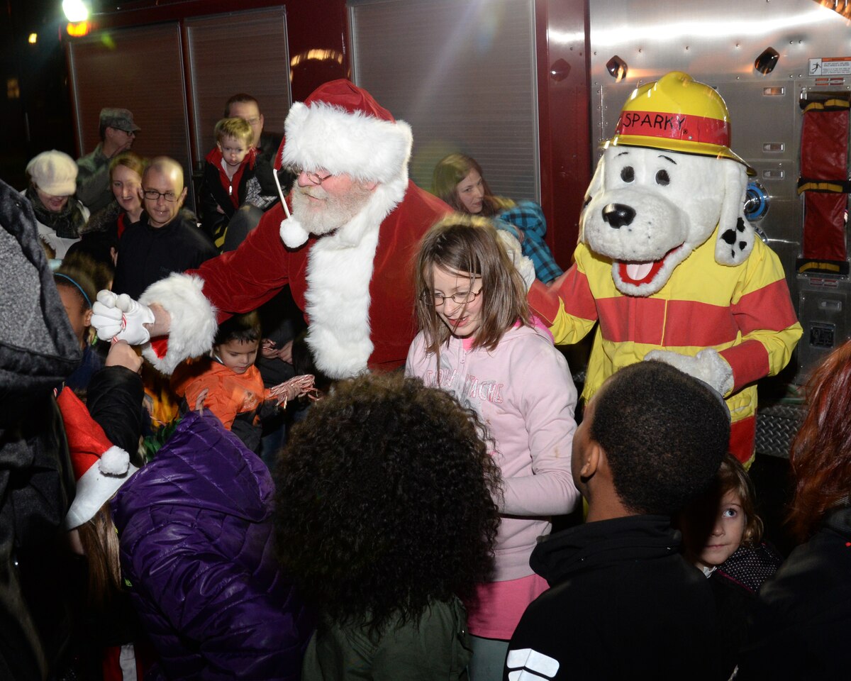 U.S. Air Force Col. Thomas Torkelson, 100th Air Refueling Wing commander, makes opening remarks at a holiday tree lighting ceremony Dec. 3, 2015, on RAF Mildenhall, England. The ceremony is intended to celebrate the holiday season and bring cheer to the base community. (U.S. Air Force photo by Airman 1st Class Justine Rho/Released)