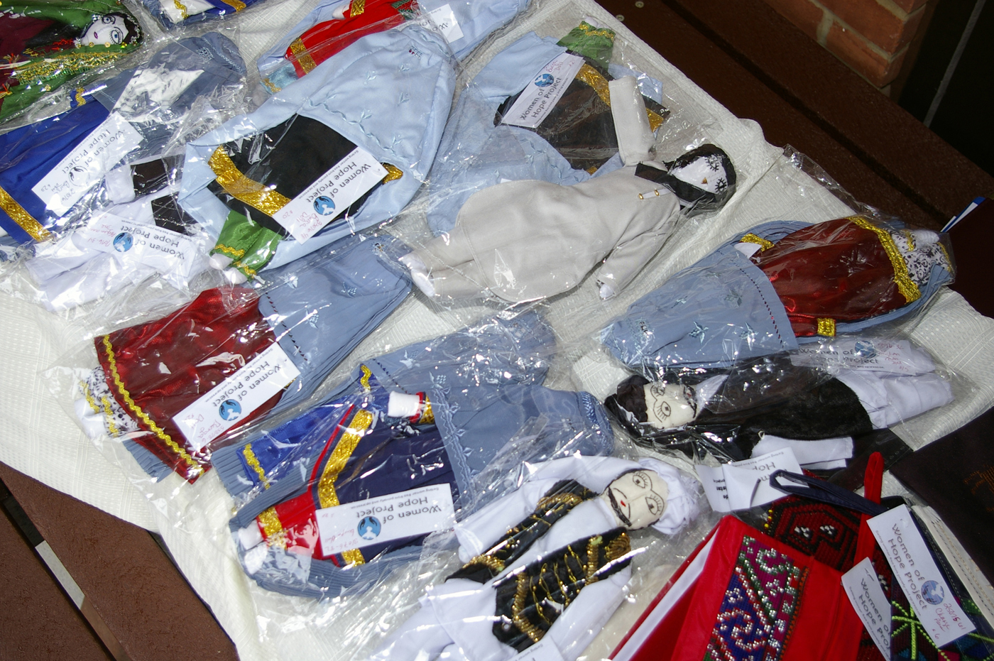 Dolls and other items were made by Afghan women and sold Sept. 14 to raise funds for the Women of Hope project. The project helps Afghan women widowed through the war on terror. It encourages them how to make and sell goods, hydroponic gardening, as well as providing education. (U.S. Air Force photo by Karen Abeyasekere)