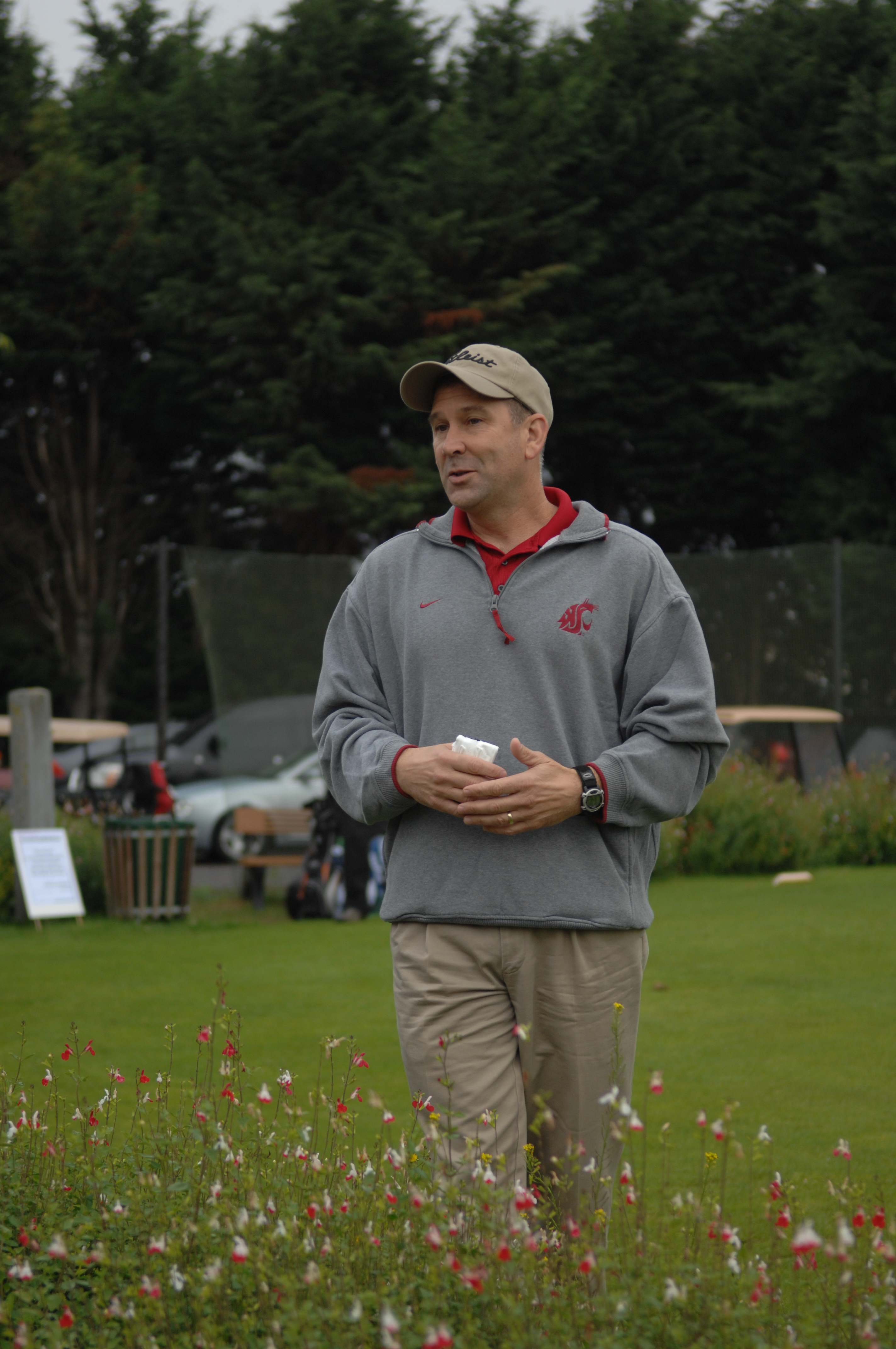 U.S. Air Force Brig. Gen. Christopher Bence, U.S. Air Forces in Europe U.K. commander, speaks to Airmen Aug. 9, 2013, before the start of the Focus on Mentorship golf tournament at the Breckland Pines Golf Club on RAF Lakenheath, England. Bence spoke about how mentorship, both formal and informal, is important in the Air Force. Bence, along with base leadership, played golf with, and mentored, Airmen throughout the day. (U.S. Air Force photo by Airman 1st Class Dillon Johnston/Released)